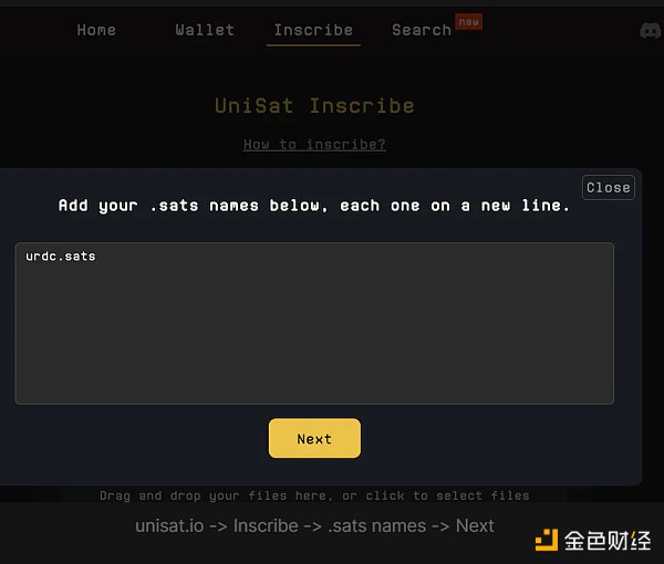 步骤2:在Inscribe选项卡添加你的.sats域名