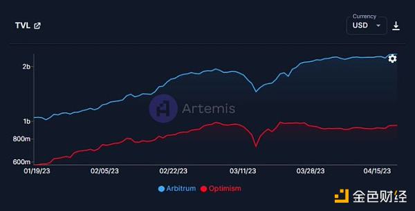 目前,OP和ARB的市值与 TVL 之比均为 0.9。