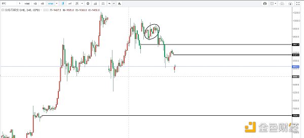 近期价格沿5日线持续向下,4小时接近超卖区域,并且周末CME开盘形成了一个跳空缺口,缺口上沿处于9000-9100之间,也是30日均线所处的位置,后续存在回补的需求,目前整体是偏空趋势,反弹的持续性和高度是有限的,回抽确认跌破的有效后,市场进一步调整的概率大,反弹是减仓或者空单介入的机会,抄底还需耐心等待,短期支撑8500-8600,压力9000-9100。