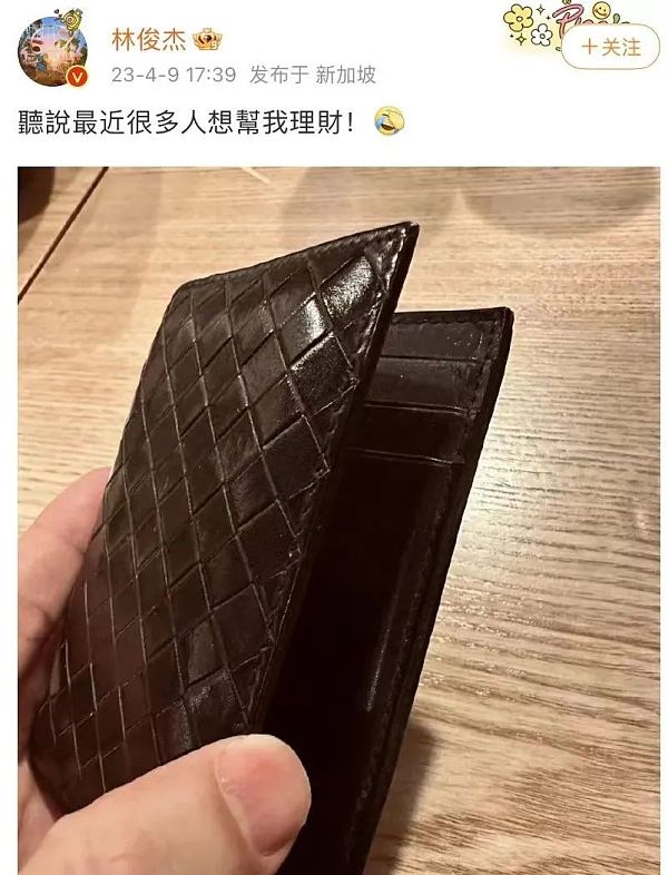 4月9日,林俊杰在个人微博发文,“听说最近很多人想帮我理财”,并配以一张“钱包”的图片,疑似是在回应这次风波。