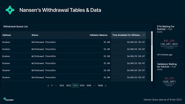 Nansen 上等待退出的验证者,包括那些已经通过队列但尚未退出的验证者,而其他网站的数据仅包括队列中的验证者。
