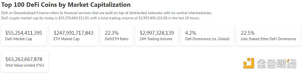 DeFi数据 1、DeFi代币总市值:526.43亿美元 DeFi总市值及前十代币 数据来源:coingecko2、过去24小时去中心化交易所的交易量24.