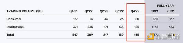 这一点从 Coinbase 最新季度财报(2022 Q4)可以看出: