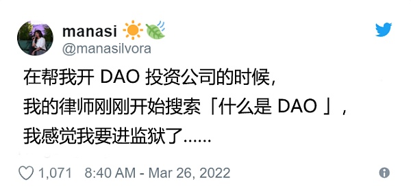 原告律师提醒了所有 DAO,如果 DAO 不让自己在法律上明确定义,那么律师也会替它们定义。暂且不谈默认情况下将普通合伙原则应用于DAO是完全不讲逻辑的,为打击拒绝法人胡萝卜的 DAO ,这些就是官僚和审判律师伸出的大棒。