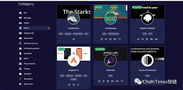 https://starkgate.starknet.io/,通过访问不同类型Dapp完成交互,其中主要完成Defi swap和流动性质押,也可以选择购买NFT等完成交互,下面拿10kswap举例。