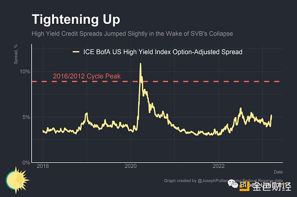尽管使用贴现窗口会导致银行的信誉受损,但自疫情以来,使用贴现窗口带来信誉受损影响已经减弱——超过60%的银行表示,如果市场条件导致资金稀缺,他们将从美联储借款,这是在2021年3月之前的情况,而在SVB崩溃之前,银行经常从贴现窗口借款数十亿美元。在SVB崩溃后进一步放松抵押品要求的变化,可能会鼓励更多银行使用贴现窗口,并有助于减少信誉受损。如此多的银行感到需要使用贴现窗口对美国金融健康状况来说是个不好的迹象,但他们使用贴现窗口而不是试图在没有美联储帮助的情况下独立应对是个好迹象。