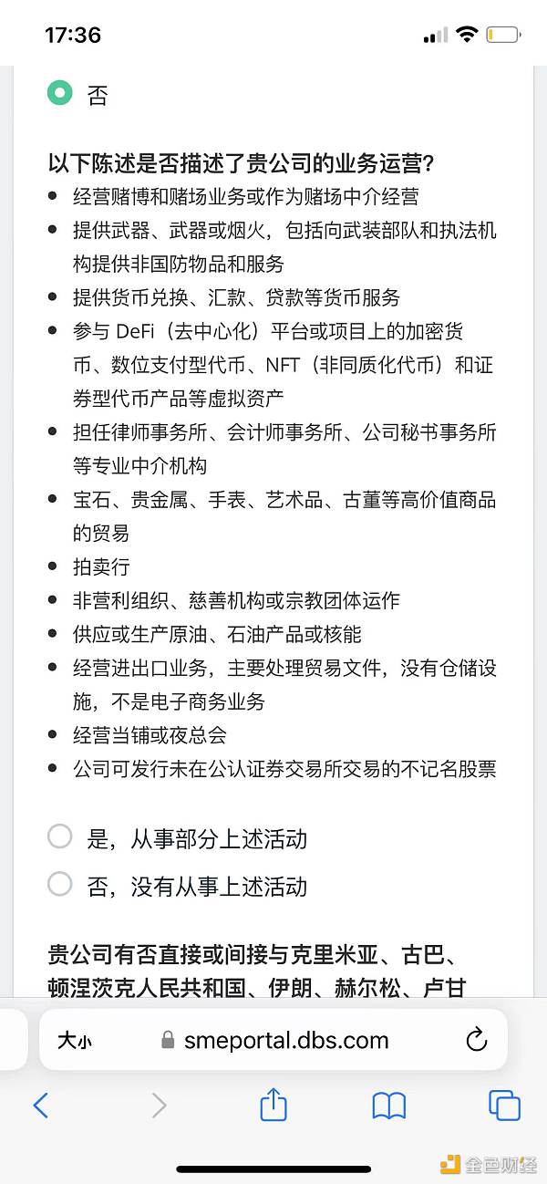 香港针对Web3的每一条具体的政策的落地,确实还需要边走边看。对于加密行业来说,与银行的合作是十分重要的。目前,香港的银行和加密行业的合作还呈现十分谨慎保守的状态。Tony在香港为公司开设银行账户时,会被询问公司业务是否涉及货币、Defi、NFT等相关,跟区块链相关的业务,和、支买卖、当铺、夜总会等一些高风险行业列在一起,这其实代表着在银行看来,区块链相关的业务有潜在金融风险。