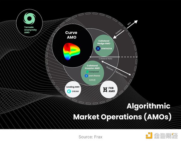 Frax在其V2升级中引入了一种Algorithmic Market Operations Controller(AMO)机制,将抵押品重新投资于Frax池中,以创造额外的收入来支持协议的增长。Frax的社区已经同意放弃双代币机制,将目标抵押比率提高到100%,使Frax成为用户长期保值的更具吸引力的资产。抵押比率的增加将通过AMO机制实现,而不是通过出售FXS代币。