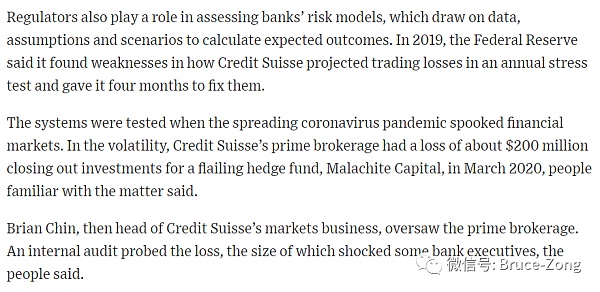 2020年3月, JASON和THIAM离开瑞信一个月不到, 又一个跟瑞信做对手盘的对冲基金爆雷了,这家Malachite Capital破产后,瑞信对其平仓后发现损失了2亿美金。这个时刻就已经暴露了瑞信的保证金系统的缺陷。据知情人士透露,瑞信的模型有两个问题:首先是没有深入研究 Malachite 的交易策略以及它在动荡的市场中的表现。第二个是保证金系统过时,该系统无法实时有效地监控随着标的证券价格的变化,头寸为银行带来了多少风险。