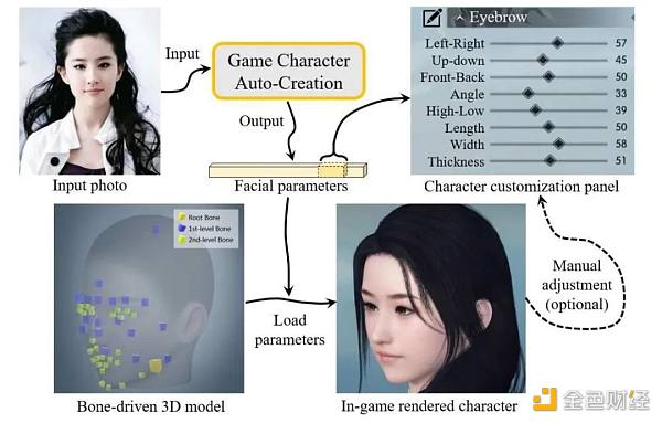 网易的AI实验室“伏羲”也最早于2017年上线,主攻AI在游戏与泛娱乐当中的应用研究。如今伏羲在NPC行为、语音、美术等方面已经运用于网易旗下多款游戏之中。如上文中提到的米哈游“AI配音”功能,网易也通过伏羲在自己的游戏《时空中的绘旅人》中实现。而在3月14日,伏羲又宣布其“文本捏脸创建角色”相关论文入选CVPR接收名单,并已应用于多款手游。