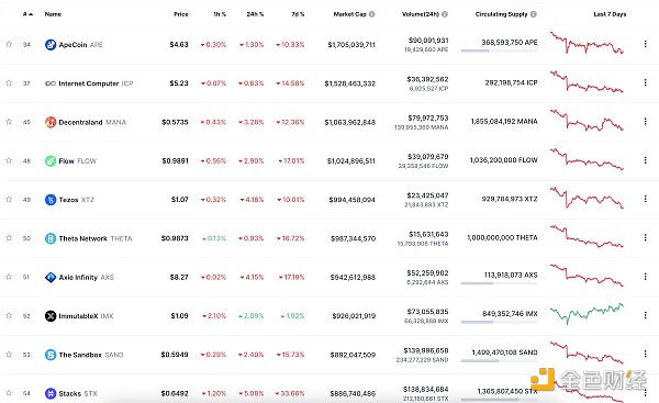 24小时NFT交易量、交易量前十项目 数据来源:Coinmarketcap