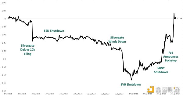 图1:银行关闭时间表和加密货币总市值(来源:CoinMetrics、Grayscale Research,东部时间2023年3月1日 – 13日下午2时)