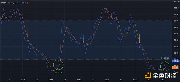 BTC和ETH的1月份反弹巩固了熊市底部,并提供了清晰的长期技术指标。这些指标在某种程度上让人想起2019年4月之前牛市周期的开始。此外,这两种资产都经历了黄金交叉,这恰好也发生在2019年4月。尽管这些指标是熊市可能结束的令人鼓舞的迹象,但在进行综合分析时还需要考虑更多因素。