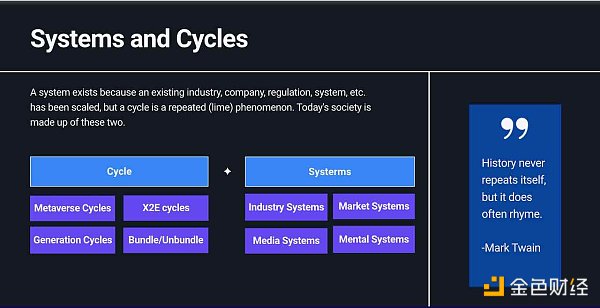 加密世界和元宇宙的创新循环以年为单位,回顾过去的两年,2021 年的主题可以总结为「元宇宙互操作性」,2022 年的主题为「网络效应」。对于 2023 的叙事则可能由「周期」和「融合」两个分主题组成。