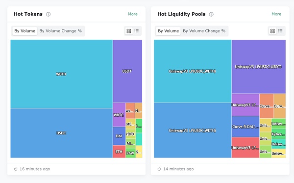 MEV实时流监控:实时的MEV交易展示流也能够方便搜索者迅速定位目前发生价格异动的代币和代币对流动性池。假如MEV实时流的交易代币都是WETH/USDC,那么很有可能是某一个WETH/USDC流动性池与其他的池存在价差,从而出现了大量的MEV套利机会。