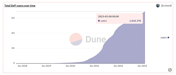 目前交易DeFi资产的唯一地址数有6.868M个,假如其中10%为意向用户,以Dune的月费$420为例,则TAM = 6.868M*10%*$420/月*12个月= $34.6亿/年。