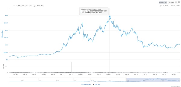 目前加密市场总市值刚刚回升至$1T以上,DeFi市场的总TVL也就不到$50B。但在牛市期间,总市值近$3T。细分到DeFi领域,Defillma 数据显示 DeFi TVL最高达到$180B。根据Grand View发布的报告,全球Web3.0区块链市场规模2022 年至 2030 年的复合年增长率 (CAGR) 为44.9%。Markets and Markets 的一份报告预测,到 2026 年全球区块链风险投资市场将达到 674 亿美元。目前,随着市场信心的回升,DeFi市场的估值将有所修复,链上数据产品依旧具有广阔的应用前景。据@0xwayne_z 估计,链上数据市场目前应有上百亿规模。