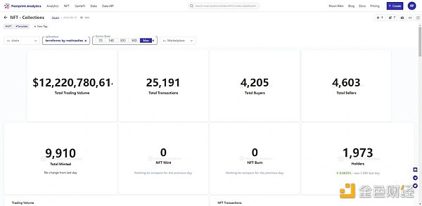 12、在没有任何清洗交易过滤的情况下,Mathcastles 的 Terraforms 的交易量达到了惊人的 120 亿美元,超过了其他任何集合,涉及 11, 341 笔交易