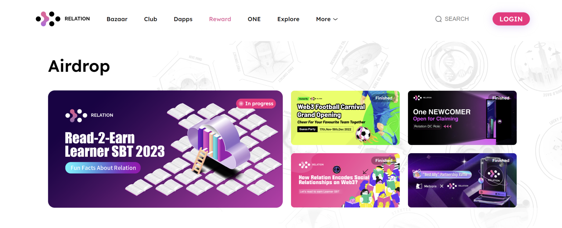 Relation 致力于通过设施,web3.0 社交社交。即是社交网络,也是任务平台。完成指定任务可以领取 SBT。
