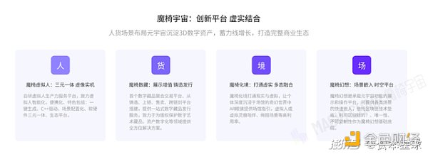 魔椅宇宙负责人介绍,我们有一个完整的商业模式闭环,即基于实体经济赋能的创新商业模式。“现阶段我们是元宇宙的内容运营商和生态的供应商,未来将成为NFT数字资产+基于NFT的社群运营+基于WEB3.0的C2M电商平台。”该负责人说。