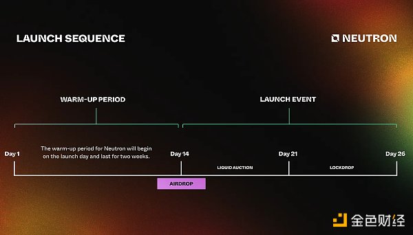 Neutron正是第一个采用复制安全性启动的消费者链,于去年经过Cosmos Hub社区72号提案批准,且获得了Cosmos Hub社区池中的5万ATOM来开发Neutron,以作为Cosmos中的DeFi Hub,包括Lido在内的知名项目也将直接部署在Neutron上。如今,Neutron的主网启动,且开始发放空投。Neutron是基于Tendermint并使用Cosmos SDK构建的无需许可的智能合约平台。由于Cosmos Hub中质押有价值约20亿美元的ATOM,通过复制安全性,Neutron也将是最安全的跨链智能合约平台之一,同时也能使DeFi应用能够在数十个区块链网络中扩展。关于Neutron的详细介绍可查看PANews上的文章,下文将介绍Neutron的启动规则。在5月24日启动活动开始之前,Neutron已经经过了两周的预热期,以确保Neutron区块链的稳定性和安全性。