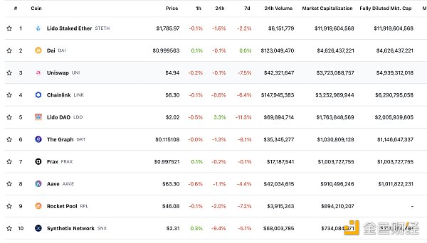 DeFi项目锁定资产前十排名及锁仓量 数据来源:defillama