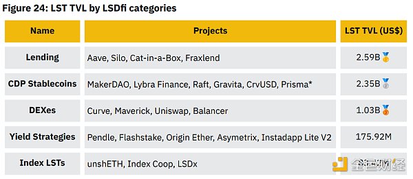在LSDfi的各个类别中,Lending以25.9亿美元的TVL领先。