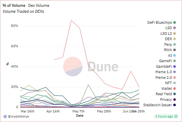 链上分析师 Crypto Kroyo 将 20 个叙事绘制成仪表盘,并对数据进行了分析。