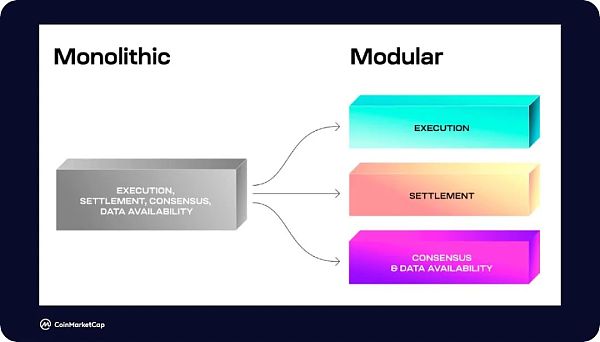 目前,大多数Layer 1 #公链 都是单体链,执行、数据可用性、安全性和共识都在同一条链上。
