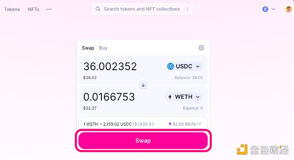 1、打开Uniswap网络应用程序(https://app.uniswap.org/#/swap),连接你的钱包,选择UniswapX测试版