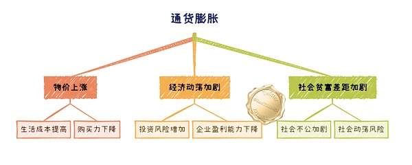 物价上涨:通货膨胀会导致物价上涨,这会增加生活成本,降低人们的购买力。