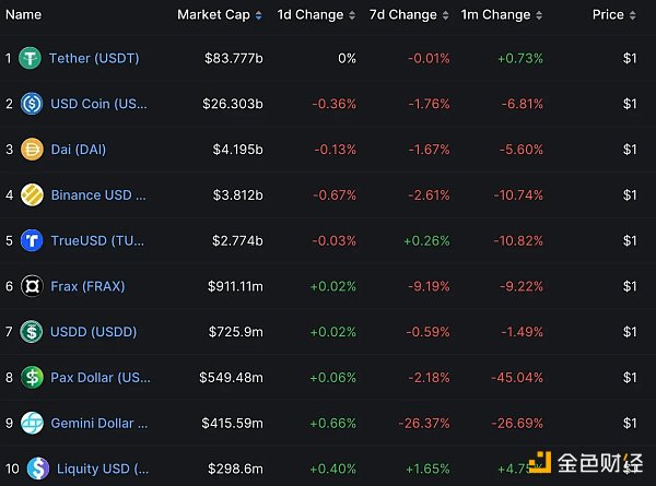 下面是按市值排名前 10 位的稳定币,你印象最深刻的是什么?
