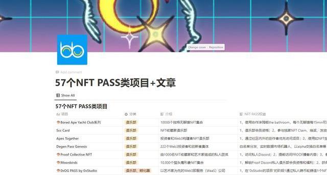 俱乐部型NFTPASS的整体质量最高,发展得最好。本轮NFTPASS类项目的代表Moonbirds就属于ProofCollectiveNFT系。而致力于打造“无聊猿游艇”俱乐部文化的BAYC则是现在NFT领域的第一IP。