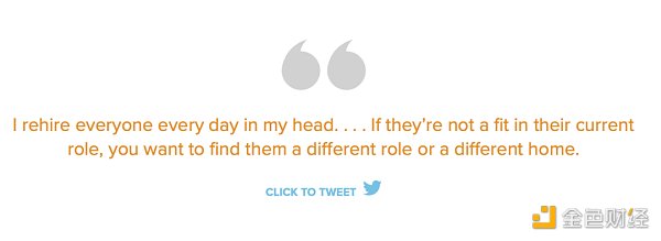 在我心里,我每天都重新雇佣每个人。对于包括创始人在内的人们来说,很难做出让一个你认识了很长时间的人离开的决定。但现实是,你必须让人们离开。如果他们在当前的角色中不适合,你希望为他们找到一个不同的角色或者一个不同的位置。或者,在公司规模达到 100 人时他们可能适合,但当公司规模扩大到 1,000 或 5,000 人时,他们可能不再适合公司。所以我有一个简单的原则,那就是:根据我今天对一个人的了解,如果今天再次招聘他们来担任那个角色,我会雇佣他们吗?这是一个非常简单的公式。