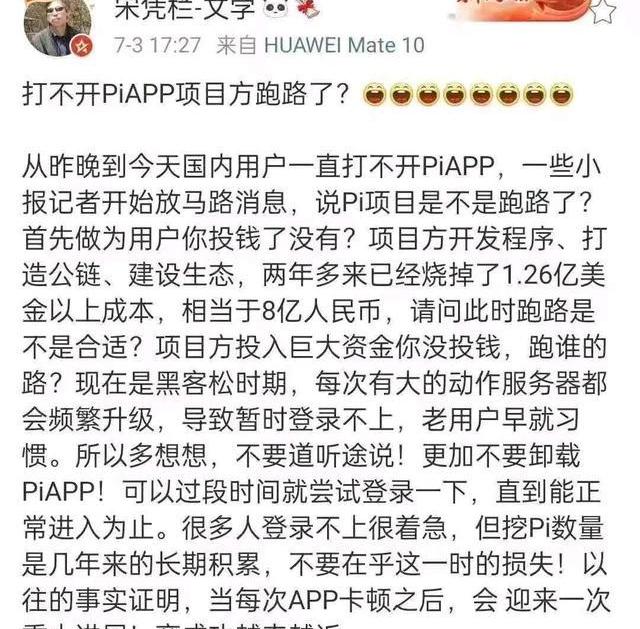 解读:1、pi项目方跑路是不可能的,因为它是投资人,你是免费的,没有理由跑路!2.不要卸载piAPP,不在乎暂时丢失!3.每次升级后都会有重大进展!请Pi友相信pi会成功。