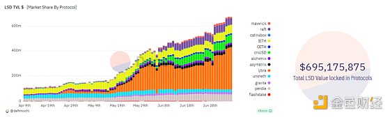 同时从技术实现上来说,LSD是一种代码实现的协议资产,具备可编程、无需许可、可组合等特性,可灵活实现与各种Fi的组合创新,即LSDFi。于是LSD自由流向各个细分领域,激活了各类DeFi,引爆了LSDFi行情。