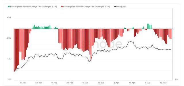 事实上,自5月18日星期二以来的过去一周内,以太币净流出131,446个。