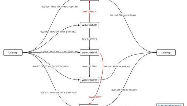 例如,Lookonchain透露,据称与Pepe团队有关的五个地址在流动性较弱的市场上赚取了123万美元的利润。他们以低价购买了8.87万亿个PEPE代币,并在Uniswap上以更高的价格出售了他们持有的90%以上的代币。