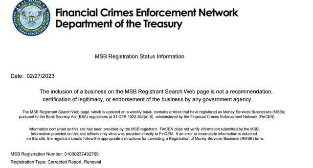 HotsCoin拥有美国金融犯罪执法网络颁发的货币服务业务监管牌照,允许平台从事加密货币相关业务。这种严格的监管许可要求企业具有较强的业务能力和偿债能力,建立完善的内部管理制度,并对公司高管和股东进行背景调查,确保不存在舞弊和身份盗用行为。此外,这为投资者提供了一个机制来检查公司的背景信息和提出投诉,从而保护消费者权益。