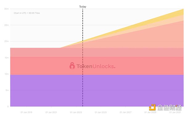 LDO 发行总量 10 亿,目前流通量 8.79 亿;代币分配中, 40.2% 归属团队与验证者、 34.6% 归属投资人、 25.2% 归属国库(目前的数据统计,来自 Tokenunlocks,并非初始代币分配);LDO 下次代币大额解锁将发生在 2023 年 8 月 26 日,解锁份额: 850 万枚 LDO,代币所属:Dragonfly,代币成本: 2.43 美元。