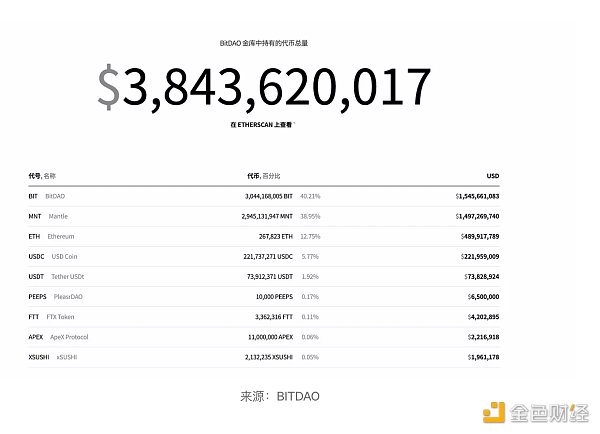 (1)资金实力雄厚:BitDAO它是目前最大的 DAO 组织之一,也拥有规模最大的金库之一,当前具有38亿美金的储备资产。这些资产离不开背后 Bybit 的贡献,Bybit已向 BitDAO金库捐赠了超过6亿美元的USDC/USDT和177,000 ETH。