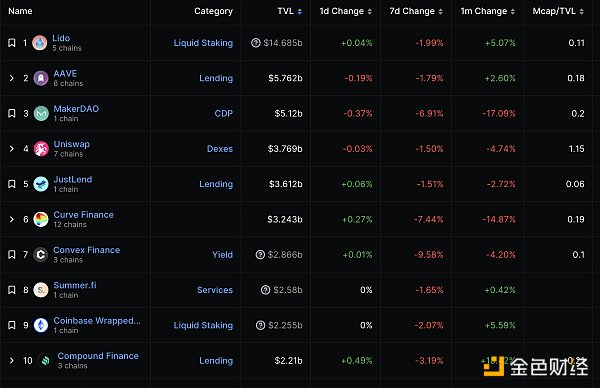 DeFi总市值及前十代币 数据来源:coingecko