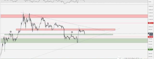 从比特币的12小时K线图可以看出,比特币价格正在向一个重要的支撑区间移动,并且这一水平也是比特币想要维持在牛市中必须要保持的支撑水平。