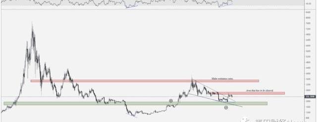 目前来看,8600-8800美元的支撑区间是非常重要的,如果比特币跌破这一区间,就将再次跌破下降趋势线,很可能导致比特币进一步下跌至7300美元下方。