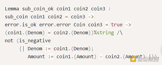 2. `subUnlockedCoin`:从某地址中扣除指定金额(代币)。递归函数`subUnlockedCoins`对一组代币执行同样的操作。这些函数的相关属性被视作公理假设。