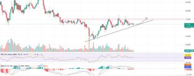 由于RSI持平,MACD没有显示出看涨反转的迹象,因此DOT价格可能会在上升三角形内盘整以达到顶点,随后可能会看涨突破5.5美元上方