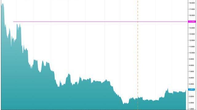 如果EOS比今天的价格增加265%,则需要在2019年底之前达到15美元,如下图所示;