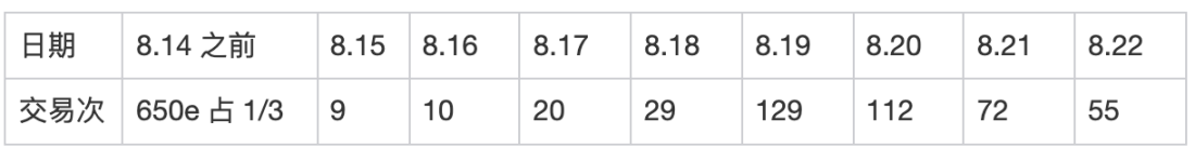 对应的 8.19 和 8.21 两天的交易量分别是 270eth 和 130eth