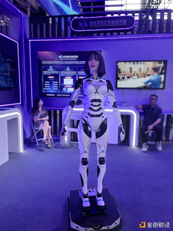 仿生皮肤,明眸亮眼,铠甲披身。南京灵境元宇宙研究院的展位前,一个和真实女性面貌相近的机器人吸引了不少观众的目光。他们或拍照或上前抚摸,对眼前的机器人颇感好奇。