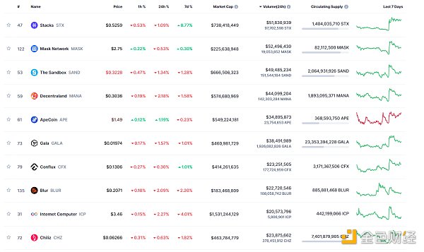 24小时NFT交易量、交易量前十项目 数据来源:Coinmarketcap